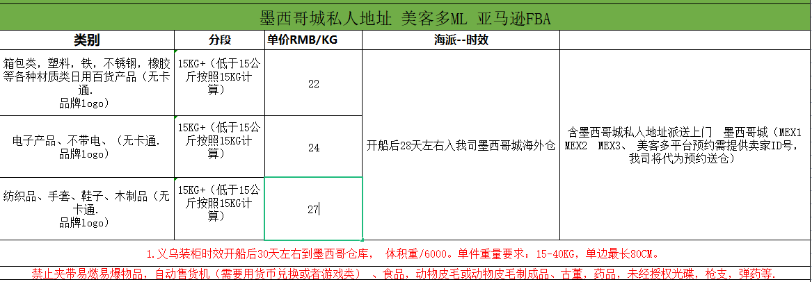 墨西哥海運(yùn)專線亞馬遜美客多運(yùn)輸