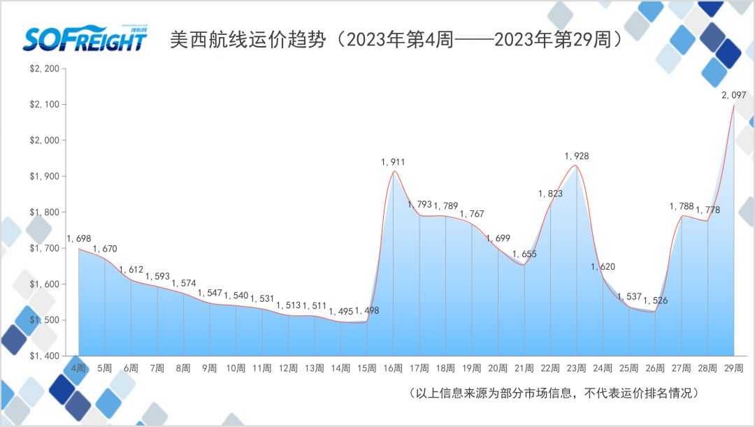 2023年第29周運價趨勢(航線篇)