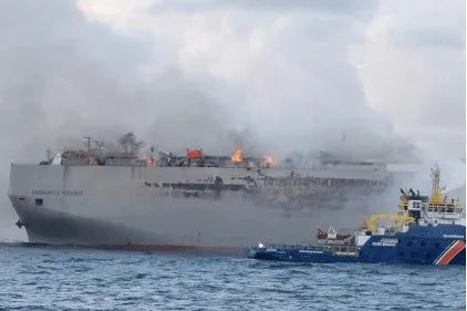 NO.5 ? 載有近3000輛汽車貨輪在荷蘭附近海域起火