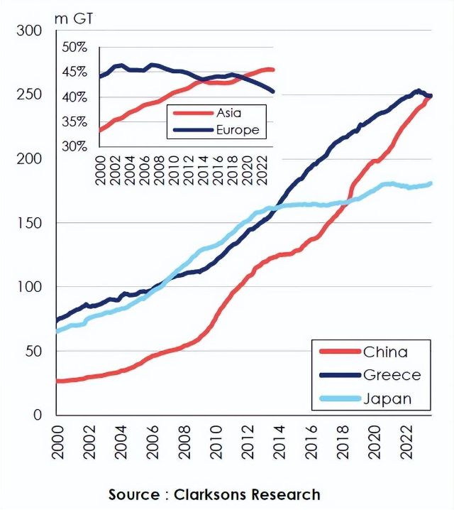 克拉克森研究最新數(shù)據(jù)顯示,按總噸位計(jì)算,中國(guó)已經(jīng)正式超過長(zhǎng)期“霸榜”的希臘,成為世界最大的船東國(guó)。