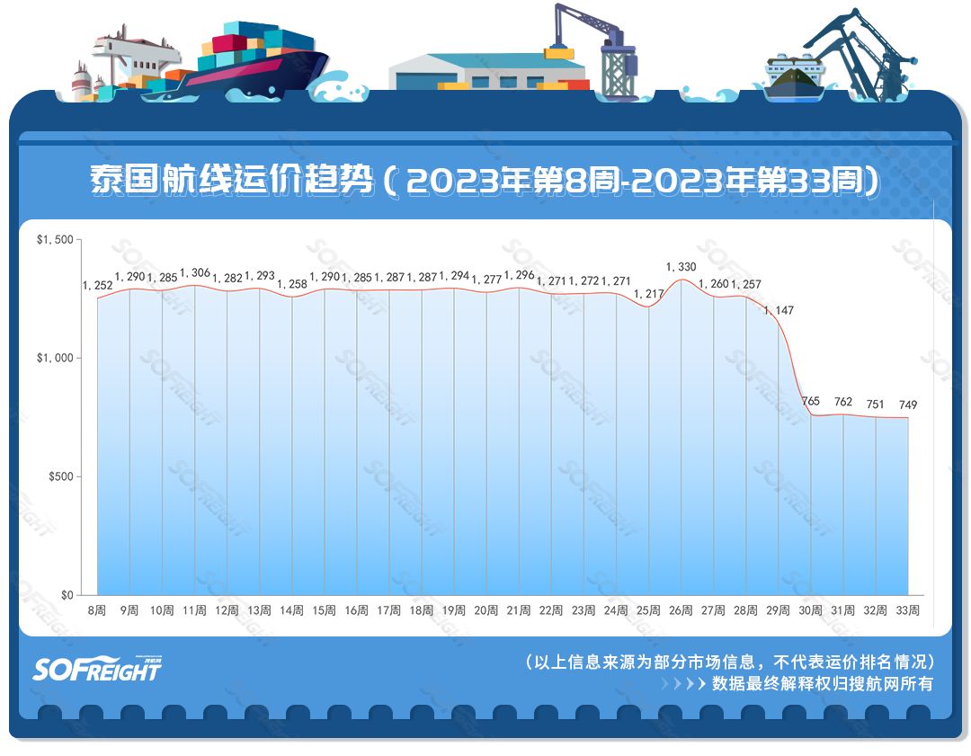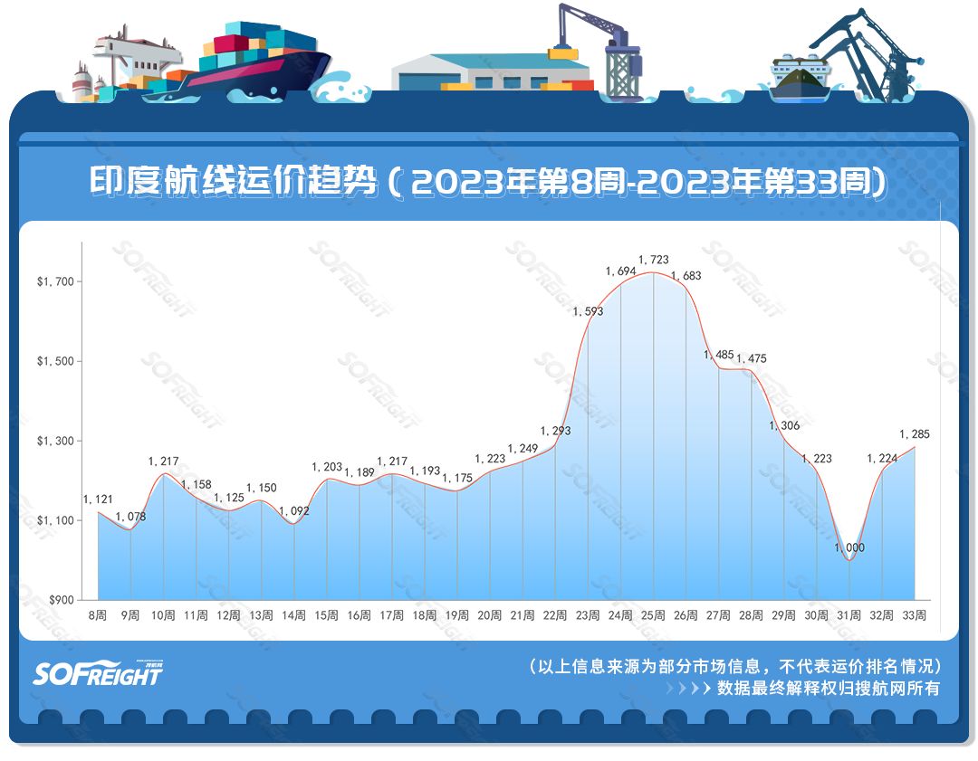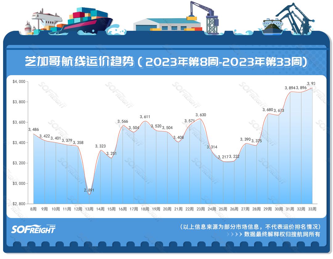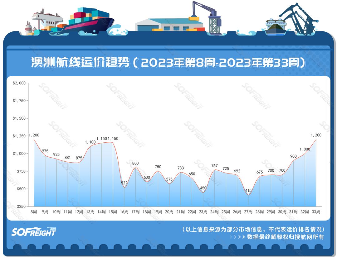 搜運(yùn)費(fèi)發(fā)布2023年第33周運(yùn)價(jià)趨勢(shì)(目的地篇)
