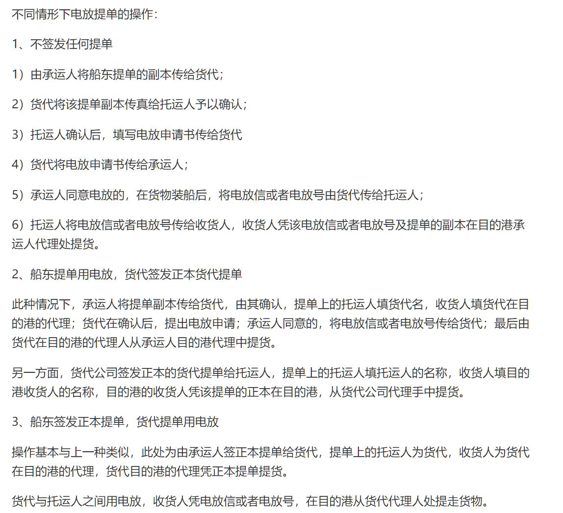不同形式下電放提單的操作
