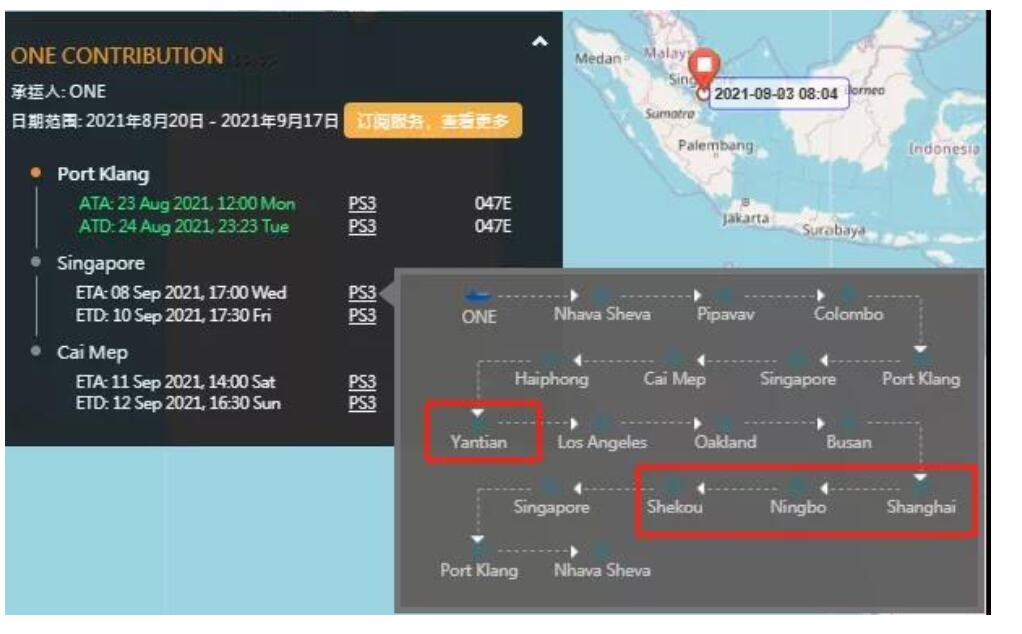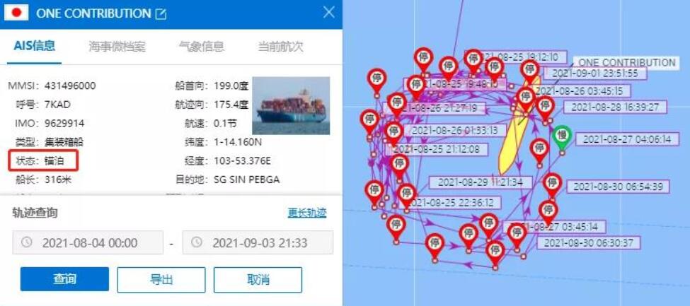 船舶追蹤數據顯示,玻利維亞港口ONE Contribution已于8月25日離開中遠航運巴生西港碼頭,并于同日抵達新加坡,截止目前該輪仍處于錨泊狀態(tài)。智利港口根據大船期數據顯示,埃及港口該輪涉及多家船公司共艙,包括: EVERGREEN、HAPAG-LLOYD、HMM、ONE、OOCL、PIL、WAN HAI、YANG MING。