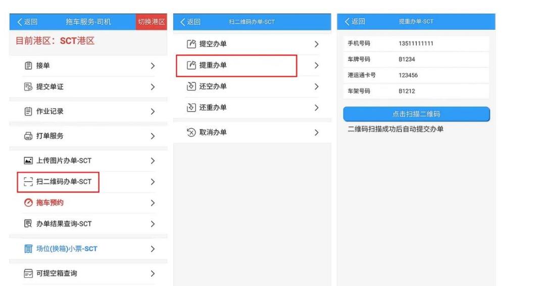 2. 進(jìn)入ePort,選擇港區(qū),點(diǎn)擊“掃二維碼辦單-SCT”。