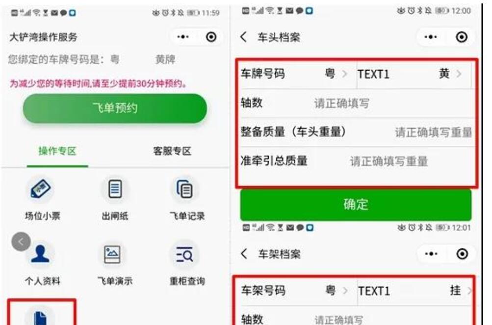 根據(jù)《廣東省道路貨物運(yùn)輸源頭超限超載治理辦法》的相關(guān)規(guī)定,碼頭不得放行超限超載的車輛出閘;為確保車輛滿足配載要求, 9月10日08:00起提重箱,司機(jī)在飛單預(yù)約前必須在“大鏟灣操作服務(wù)”小程序進(jìn)行車輛資料備案,完成備案、預(yù)約成功后方可進(jìn)港提柜,飛單預(yù)約流程維持不變。