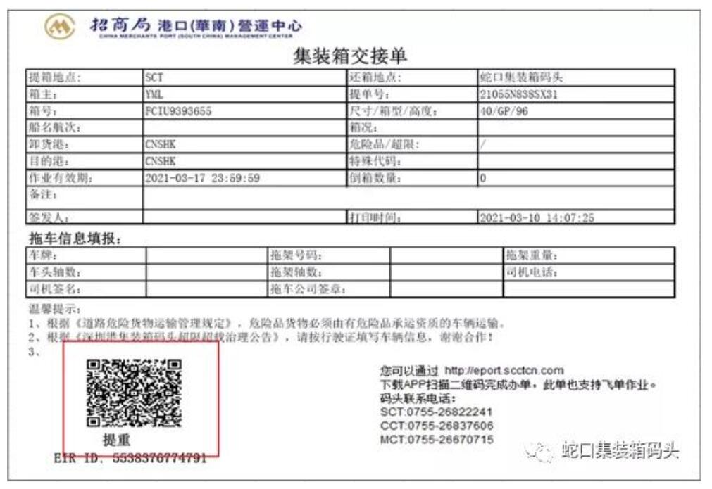 根據(jù)《廣東省道路貨物運(yùn)輸源頭超限超載治理辦法》等相關(guān)規(guī)定, 碼頭不得放行超限超載的車輛出閘 。為確保車輛滿足配載要求, 9月10日08:00起,提重箱司機(jī)在進(jìn)閘前需提交車架資料, 使用 ePort APP二維碼或飛單辦單。