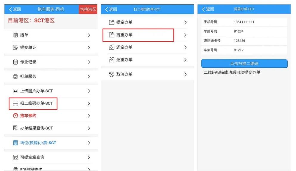 根據(jù)《廣東省道路貨物運(yùn)輸源頭超限超載治理辦法》的相關(guān)規(guī)定,碼頭不得放行超限超載的車輛出閘,為確保車輛滿足配載要求, 9月10日08:00起提重箱(包括進(jìn)口重箱、退運(yùn)出口重箱),司機(jī)進(jìn)閘前必須在“進(jìn)港申報(bào)”APP進(jìn)行申報(bào),申報(bào)成功后方可進(jìn)港提柜,其他提重箱流程維持不變。