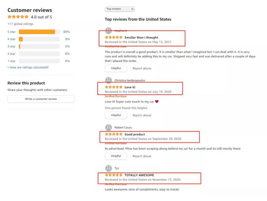 在驗證過程中,小編發(fā)現(xiàn)該賣家使用了兩種騷操作, 首先該listing出現(xiàn)了合并review的情況,該產(chǎn)品有117個全球評級,但是留評的時間讓人迷惑。